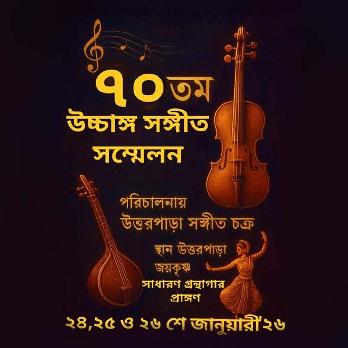 The 70th Annual Classical Music Conference in Uttarpara, scheduled for January 2026, is an essential event for serious connoisseurs of Indian classical music. This conference is known for its night-long classical music sessions, focusing on artistic quality and depth. It is held in a unique and historic setting at the Uttarpara Jaikrishna Public Library Ground.
