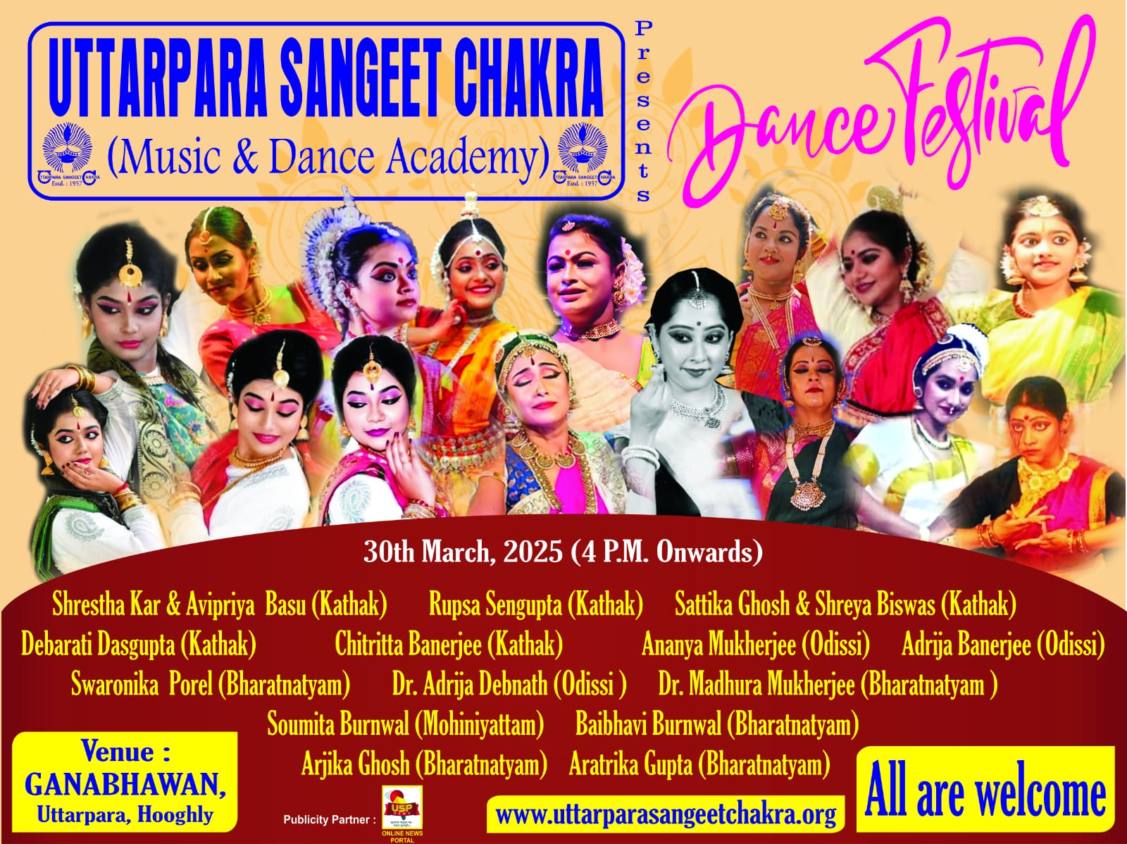 Uttarpara Sangeet Chakra is a voluntary social and cultural organization operating from its office cum Training School premises in Uttarpara. The organization is widely known for its Annual Classical Musical Conference. It also organizes local and district level Conferences, workshop, talent search competitions throughout the year.